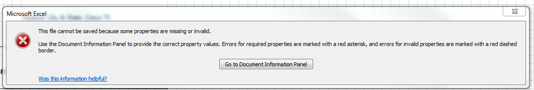 I had a client who had an e-mail enabled library set up in SharePoint 2010. Whenever they tried to open up a file, such as Excel, from SharePoint and save it back to the server, they would get an error that said “The file cannot be saved because some properties are missing or invalid”: