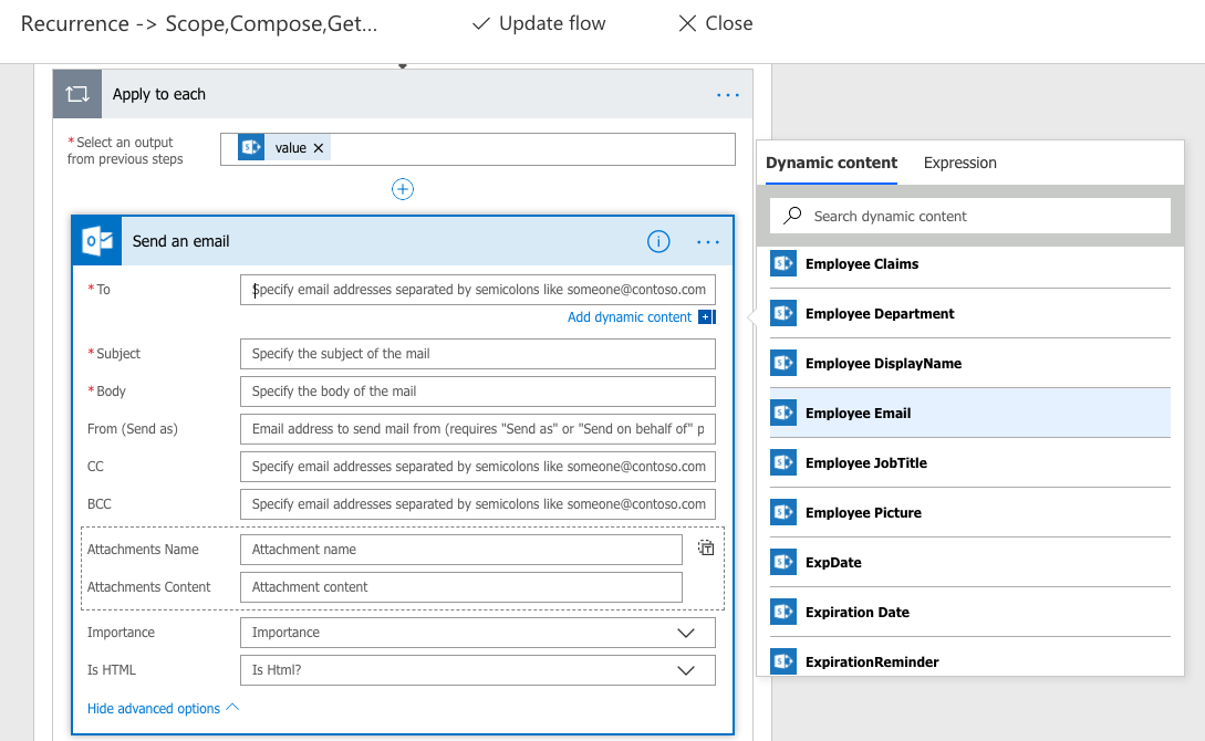 Using Flow to send Email Reminder from SharePoint Data